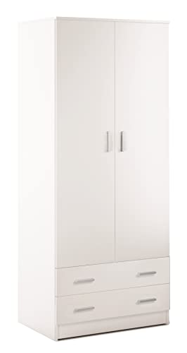 CAESAROO Armadio 77x182H cm Bianco Opaco con Due Ante e Due cassetti - Bianco