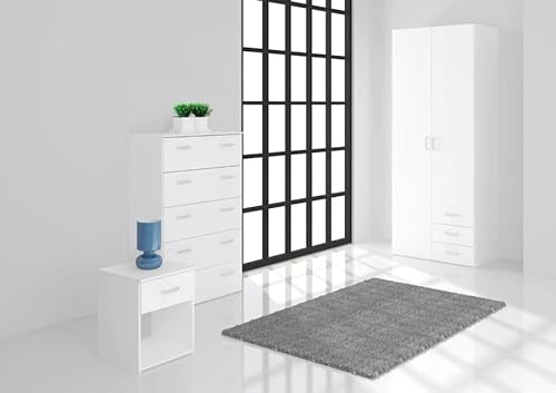 CAESAROO Armadio 77x200H cm Bianco opaco con due ante e tre cassetti - Bianco