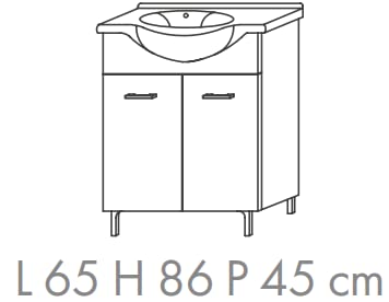 Mobile bagno a terra 65 cm Ambra in legno Rovere Grigio con Lavabo in ceramica e specchio con lampada Led