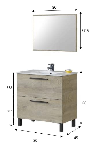 Mobile bagno a terra 80 cm Rovere con lavabo e specchio