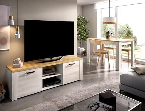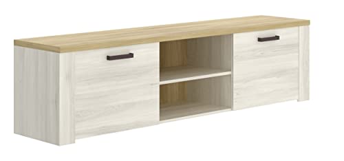 CAESAROO Mobile Porta TV 180 cm Amelia Rovere sbiancato e Rovere chiaro con due ante e due vani - Rovere sbiancato e Rovere chiaro