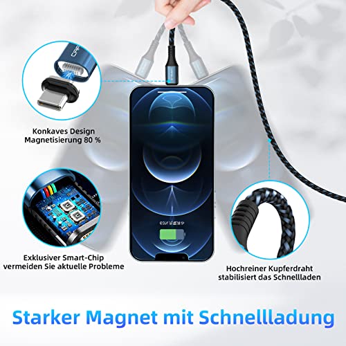 Multifunzione: cavo USB 3 in 1, connettore di tipo C, connettore micro USB e connettore per telefono, ricarica ottimizzata su praticamente qualsiasi dispositivo mobile, copre telefoni, tablet e laptop (ulteriori informazioni si trovano nella descrizione), rende la ricarica più comoda e completa la connessione magnetica e migliora l'efficienza di carica. Solo 1 cavo magnetico per tutti i dispositivi della famiglia. Nota: questo non è un cavo da USB A a tipo C.