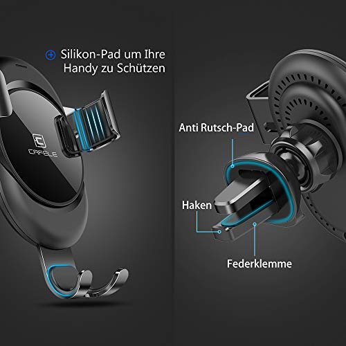 CAFELE - Supporto da Auto per bocchette di aerazione New Tech, Utilizzabile con Una Sola Mano, Sicuro e Comodo Durante la Guida, Colore: Nero