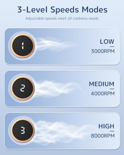 ❄【3 Modalità di Impostazione e Display LCD】Questo Ventilatore da Collo soffia aria fresca per aiutarvi a rinfrescarvi rapidamente a 3 velocità opzionali: L1-3000 giri/min, L2-4000 giri/min e L3-8000 giri/min. Potete sempre scegliere la modalità ideale per voi, ad esempio all'interno o all'esterno. Inoltre, il Ventilatore Personale da Collo CAFELE è stato