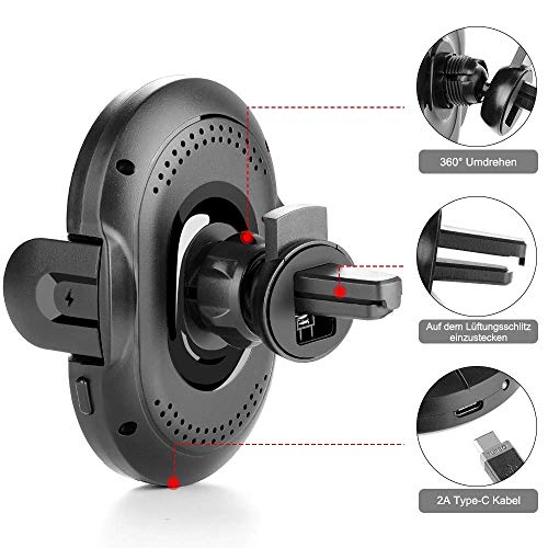 [Ricarica rapida wireless e 2 A tipo C] Questo supporto per cellulare può caricare rapidamente e senza fili 7.5 W per iPhone e 10 W. Il cavo di tipo C da 2 A può essere collegato contemporaneamente in auto. Pratico e portatile senza cavo di ricarica.