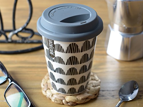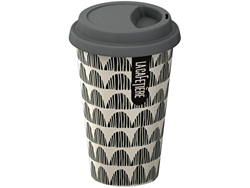 Bring the cafe culture on the go with this La Cafetiere Small Doubled Porcelain Walled Grey Taupe Bunting Travel Mug