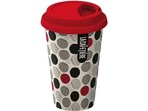 Bring the cafe culture on the go with this La Cafetiere Small Double Walled Porcelain Grey/Black/Red Spot Travel Mug