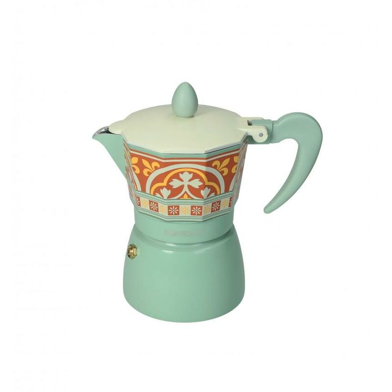 Misure: cm 16x8,5x15,5h Peso: kg 0.31 Materiale: alluminio Decoro: pattern rosone Capienza: 200 ml (3 tazzine)