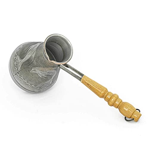 Caffettiera turca in rame, 380 ml, con manico in legno