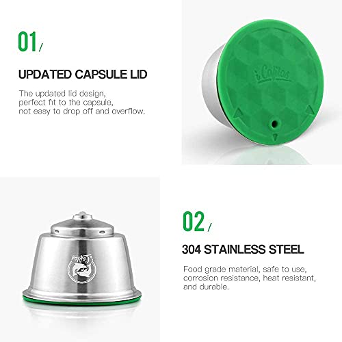 I Cafilas Riutilizzabile Ricaricabile Capsula per Dolce Gusto, Filtro Capsule Compatibile Dolce Gusto, con Cucchiaio da caffè, Spazzola (Tamper+Capsula)