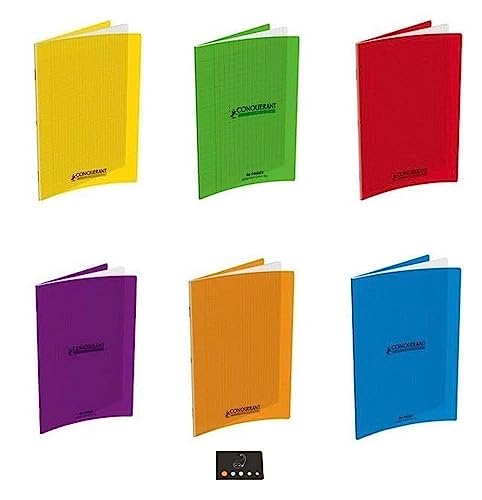 Lot de 6 Cahiers Hamelin 17 x 22-96 pages - couverture Polypro -Grands Carreaux Seyès- Couleurs Assorties + 1 Règle Marque-page en Bois Blumie