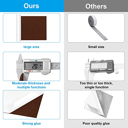 【Grandi alianti in feltro autoadesivo:】 questo nastro in feltro autoadesivo è lungo 150 cm / 59 pollici, largo 20 cm / 7.9 pollici e spesso 2 mm, spessore moderato con forte capacità di carico, superficie in feltro di fibra ad alta densità, inodore e senza pressione di pressione, durevole.