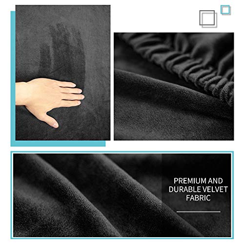 CAIJIN Copriseduta Divano Elasticizzato, Tessuto in velluto protettore del Divano Lavabiledel Cuscino,Fodera Super Morbida e Spessa per la Protezione del Divano (1 Posti, Nero)