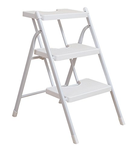CAIJUN Passo Scala Sgabello Pieghevole in Metallo Ingegneria Scala Mobile Casa per Salire Sedie A Spina di Pesce in Plastica Sgabello Legno (Colore: White 3 Layers)