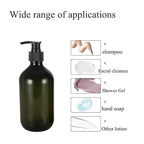 Cailiya Dispenser di Sapone in Plastica per Bagno e Cucina, 4 Pezzi Bottiglia Quadrata Vuota per Disinfettante per Le Mani, Lozioni, Shampoo, Doccia 500 ml(Verde Scuro)