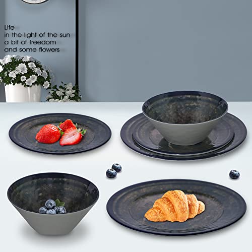 QUESTO SET DI STOVIGLIE COMPRENDE - Set di stoviglie in melamina da 12 pezzi: 4 piatti piani da 10 1/2 pollici, 4 piatti da insalata da 8 1/2 pollici, 4 ciotole da 7 pollici.