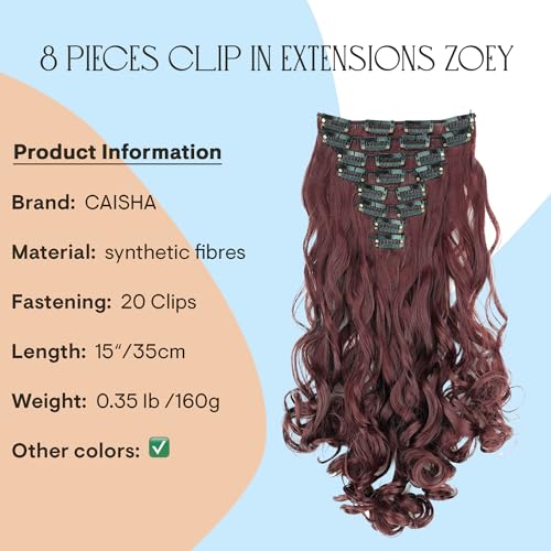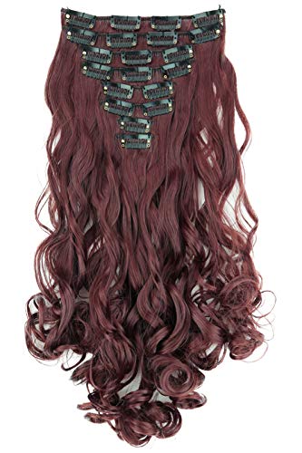 CAISHA XXL Set Da 8 Parti Clip In Extensions Extension Per Capelli Parrucchino Voluminosamente Ondulato Marrone Rossastro CES110-1