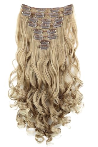 CAISHA XL 45cm 7 Pezzi Set CLIP IN EXTENSIONS Extensions Per I Capelli Posticcio Voluminoso Ondulato Biondo Misto CE4-1