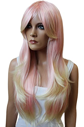 CAISHA by PRETTYSHOP Parrucca Resistente Al Calore Carnevale Cosplay Parrucca Per Feste Ciocca Per Capelli Lunghi Biondo Rosa PHK18