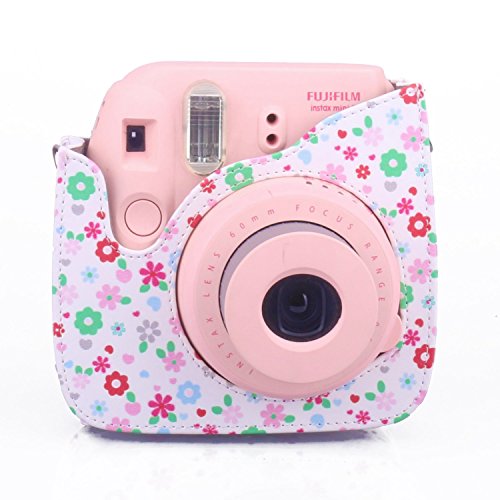 CAIUL Compatible Mini 8 Camera Case Bag With Soft PU Leather Material for Fujifilm Instax Mini 8 8+ 9 Film Camera (Floral)