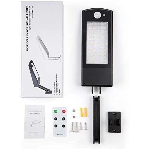 CAIYUE Luci solari 48LED 4500mAh 900lm IP65 Impermeabile Esterno Luci di Sicurezza con Staffa Regolabile Staffa e Telecomando,120°Sensore di Movimento (Luce Bianca)