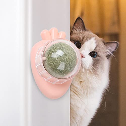 ↔【Design da parete】 La pallina di menta per gatti rotante commestibile, i dolcetti per rulli da parete con erba gatta e i giocattoli da masticare per gattini sono progettati per attaccarsi al muro, sono facili da attaccare e non cadono facilmente.
