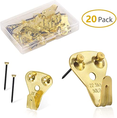 Cakunmik 20 Pack Hook Set 50 lbs Picture Frame Hanger Hooks with Nails, Heavy Duty Versatile Picture Hanger, Metal Wall Hook for Hanging Photo/Mirror/Decoration