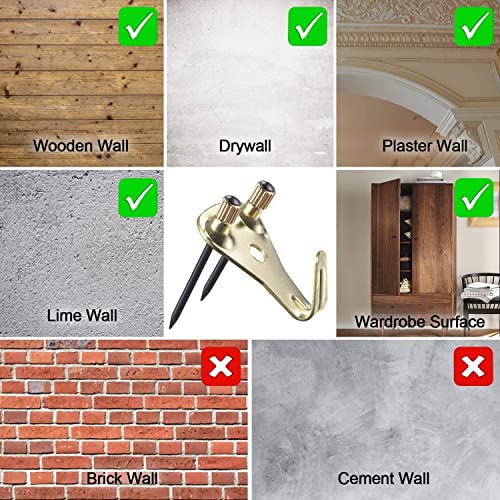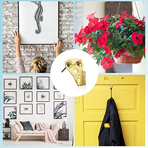 High quality & durable] The picture hooks are made of sturdy brass, stainless steel and metal. Our heavy duty versatile picture hangers are rustproof, strong and durable. These multi-function hooks could afford items weighing up to 50 lbs.
