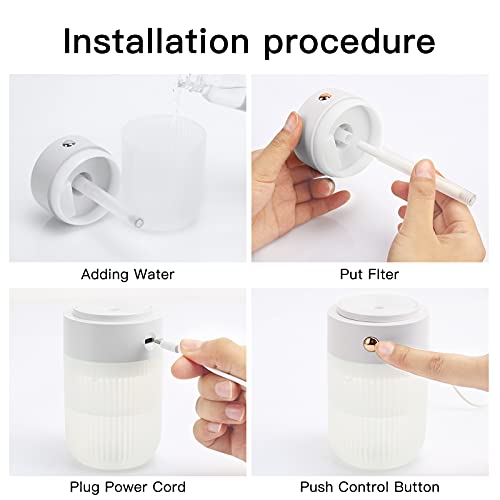 【Piccolo e portatile】 l'umidificatore portatile ha le dimensioni della tua da portare con te. Non occupa troppo e può essere facilmente posizionato su qualsiasi tavolo. La capacità di 250 ml può produrre spruzzo fine per aumentare l'umidità dell'aria e aiutare a mig
