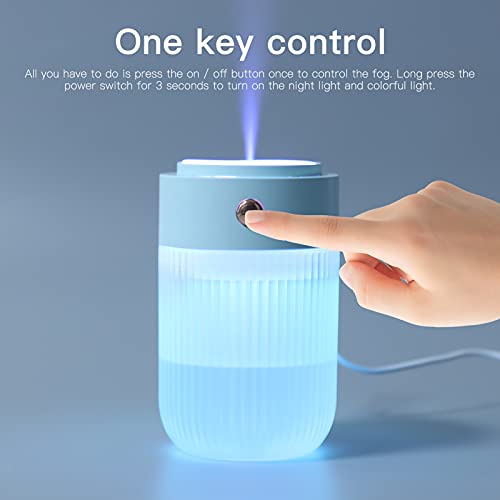 【Design di controllo a un tasto】 questo mini umidificatore USB portatile adotta il controllo a un pulsante, controlla tutte le funzioni con un pulsante. Tutto quello che devi fare è premere il pulsante on/off una per controllare la nebbia. Premere a lungo l'interruttore di alimentazione per 3 secondi per accendere la luce notturna e le luci colorate.