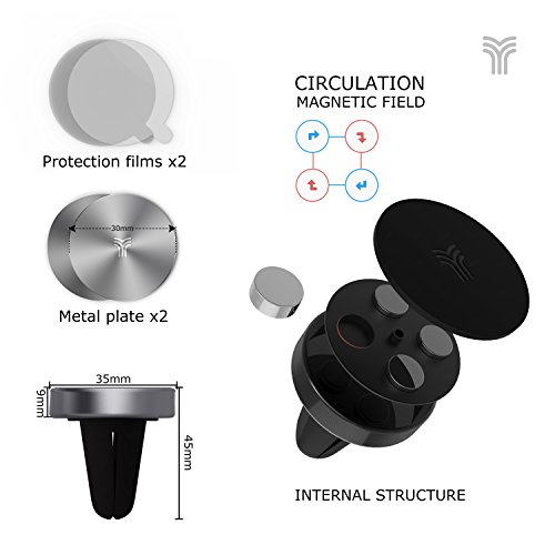YOSH Calamita per Cellulare Auto Porta Cellulare da Auto Supporto Auto Smartphone Porta Cellulare Macchina Magnetico per iPhone 8 7 6s 6 Samsung Galaxy S8 S7 j7 Huawei Honor Blackview (Grey)