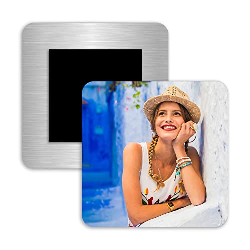 Calamita magnete personalizzato in alluminio calamita magnetica da personalizzare con foto e testo forma quadrata 5x5 cm o rettangolare 7,5x6 cm (5x5)