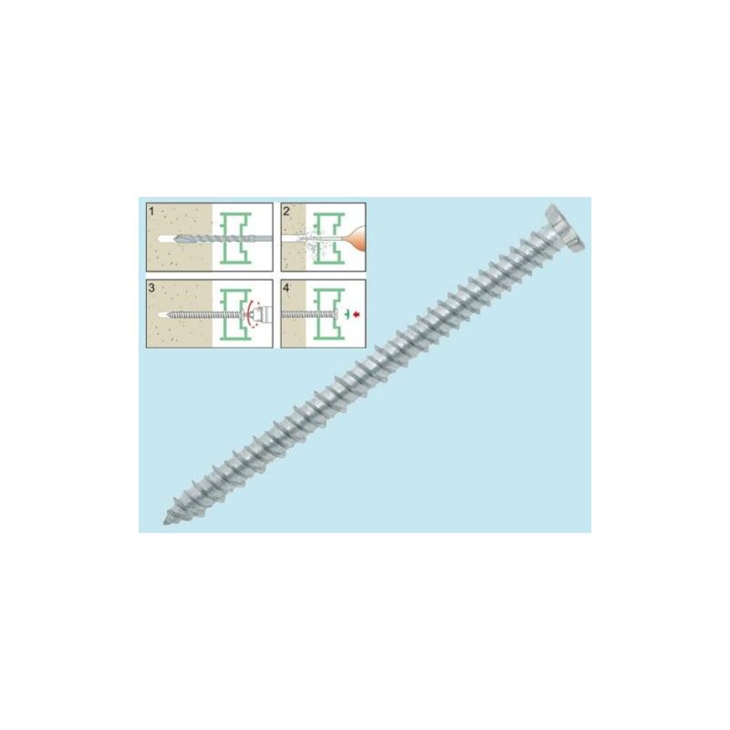 100 PZ VITI PER CALCESTRUZZO TPS TORX MISURA Ø7,5 x L150 MM Vite testa svasata piana zincata bianca con impronta Torx T-30, utilizzo senza tassello, specifica per fissaggi su calcestruzzo. Norme EN 14592/2009 MISURA: Ø7,5 x L150 mm. IL PREZZO SI RIFERISCE ALLA CF. DI PZ 100