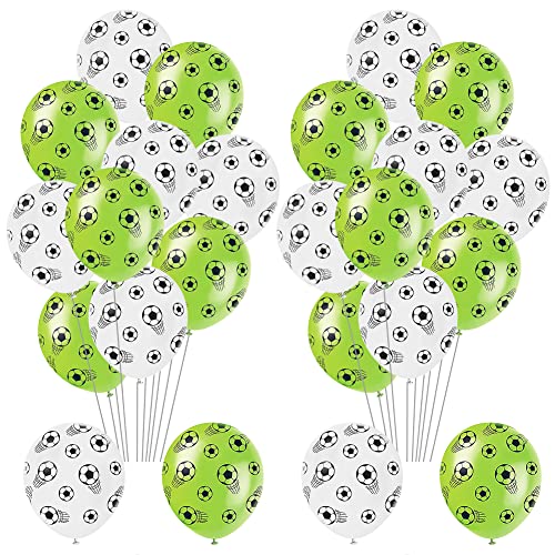 Decorazione Per Feste a Tema Calcio: Otterrai un totale di 50 pezzi di palloncini da calcio in 2 colori, tra cui verde e bianco, 25 pezzi di ogni colore, molto adatti per decorare feste a tema calcio