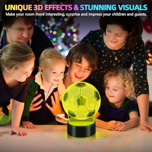 Calcio Lampade, 3D Calcio LED Luce Notturna, Regalo de Calcio per Bambini 10 anni maschio, 16 Cambi di Colore Illusione Ottica Luce Notturna, Compleanno Regali di Natale per Ragazza, Ragazzo