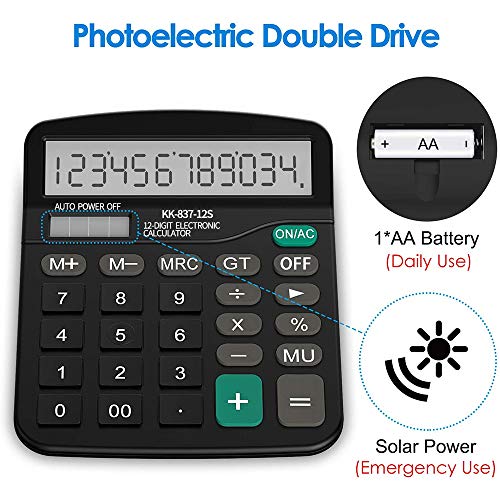 ✔ La calcolatrice elettrica ha 2wo-way potenze, solare e batteria (una batteria AA non inclusa). Alimentato a energia solare quando la luce è sufficiente, una batteria AA quando la luce è insufficiente