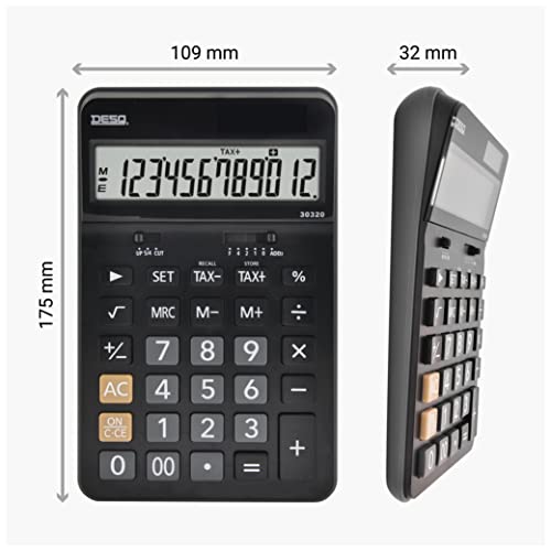 DESQ Calcolatrice da tavolo, display a 12 cifre, grande, IVA, 30320, nero