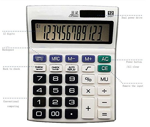 12 schermo HD / grande / display digitale, un'unità doppia alimentazione, funzionalità di calcolo convenzionale, tasto di accensione AC / Clear