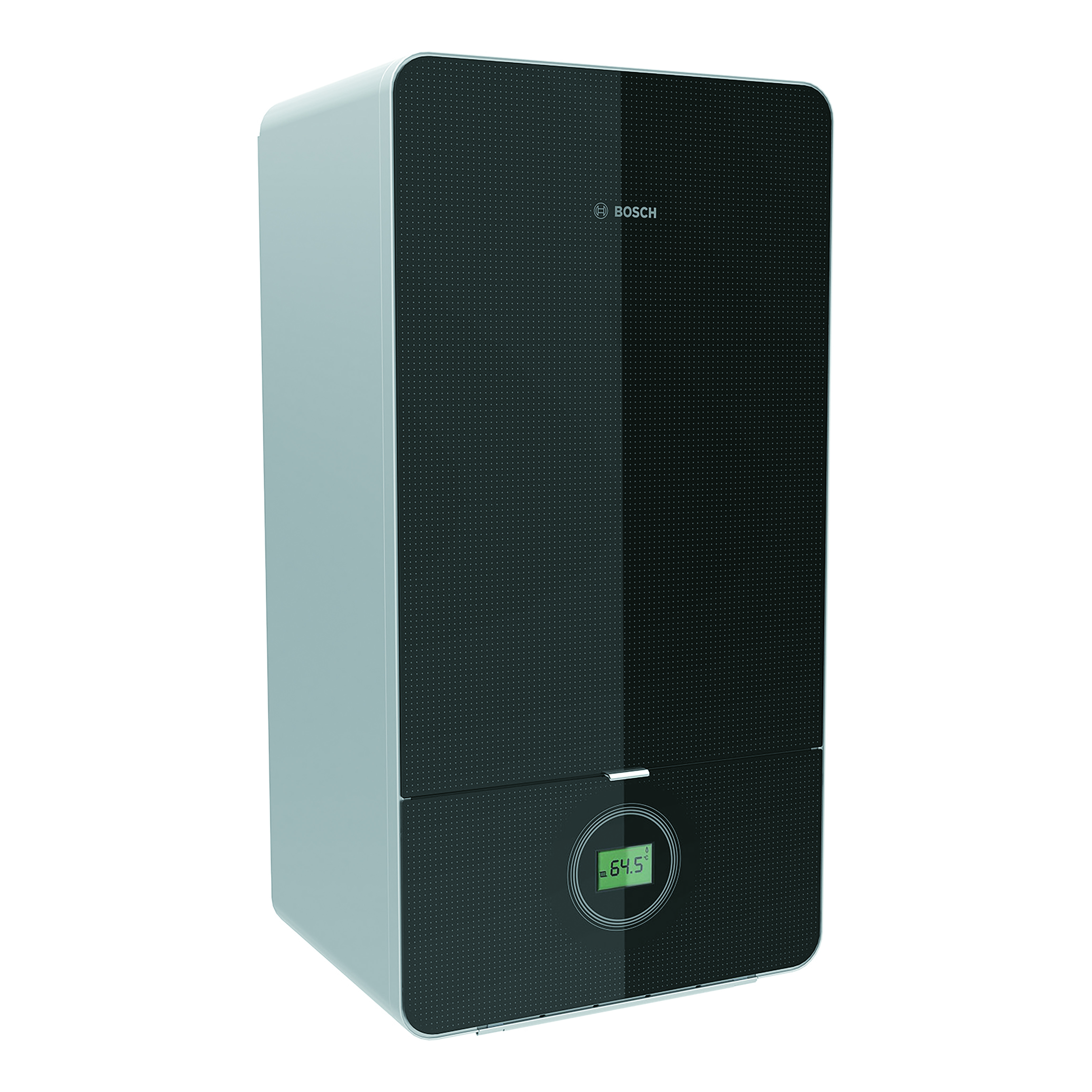 Caldaia a condensazione murale combinata con mantello in vetro titanio. Convertibile in alimentazione a GPL. Campo di modulazione fino ad 1:8, costante, grazie al sistema di modulazione privo di organi meccanici. Nuovo ed elegante design grazie al mantello in vetro temprato al titanio
