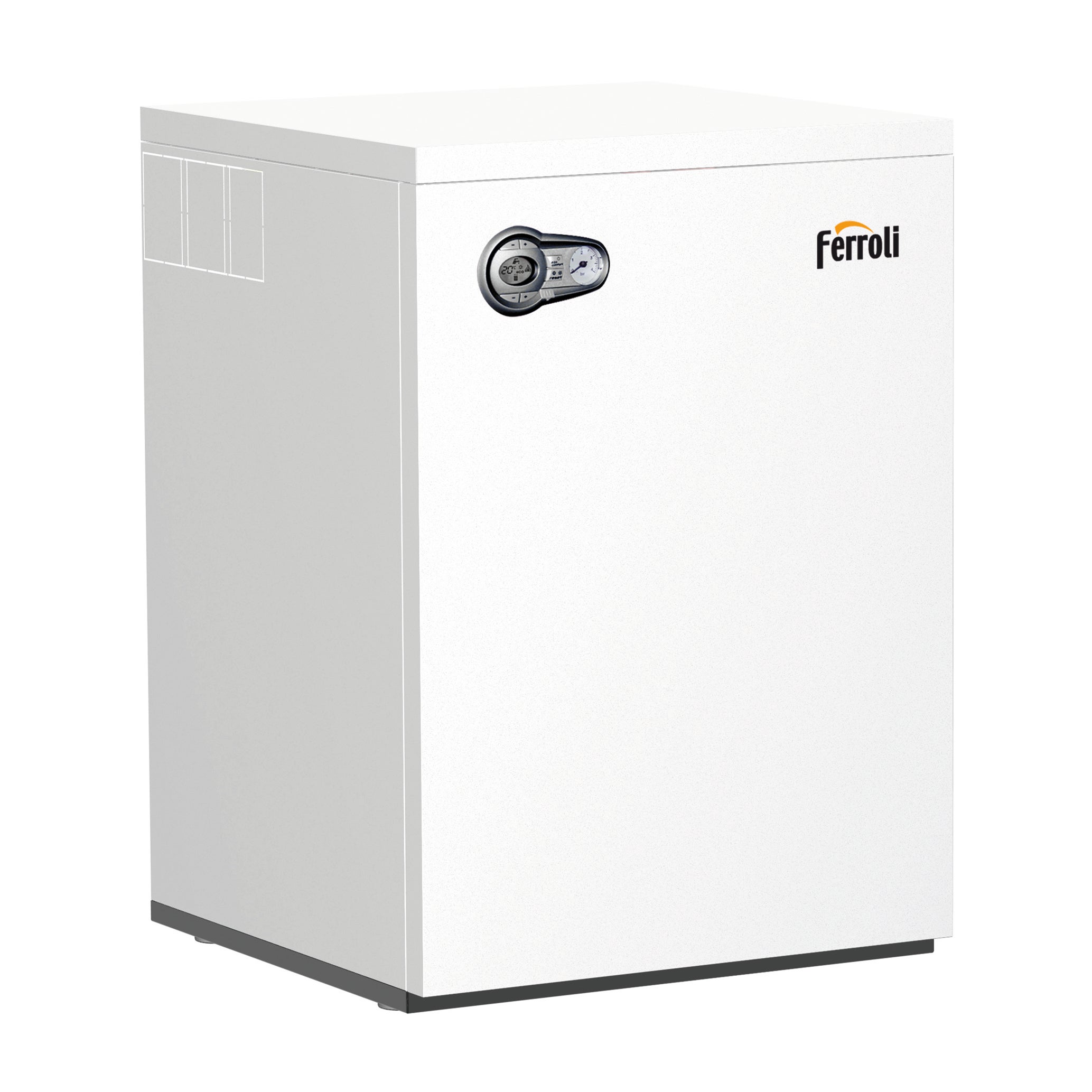 CALDAIA A BASAMENTO A CONDENSAZIONE, Produzione di acqua calda sanitaria con accumulo in acciaio inox da 50 litri con attacco per ricircolo. ACCUMULO SANITARIO INOX.. Convertibile in alimentazione a GPL. in abbinamento al comando remoto modulante e alla sonda esterna (opzionali). Minime emissioni inquinanti. Funzione antigelo con protezione di serie fino a -5°C. Trasformazione metano/GPL/Aria propanata gratuita raggiunge la classe di efficienza superiore A