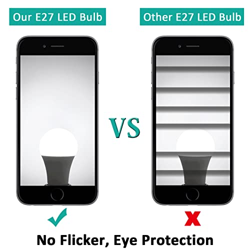 【Qualità affidabile】 Ogni lampadina a vite E27 è approvata CE. Durata fino a 25.000 ore, funzionamento istantaneo, assenza di sfarfallio, resa cromatica elevata (CRI ≥ 80), assenza di piombo o mercurio, assenza di radiazioni UV o IR.
