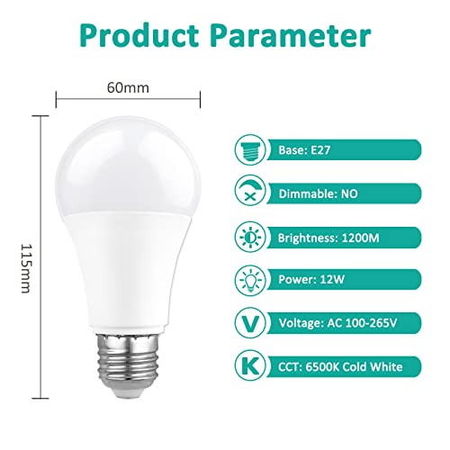 【Risparmio energetico del 90%】 Le lampadine a LED E27 da 12 W consumano solo il 10% di energia, ma forniscono un'emissione luminosa di 1200 lumen e un accurato colore bianco freddo di 6500 K, risparmiando fino al 90% sulla bolletta elettrica rispetto alle lampadine a incandescenza da 100 W.