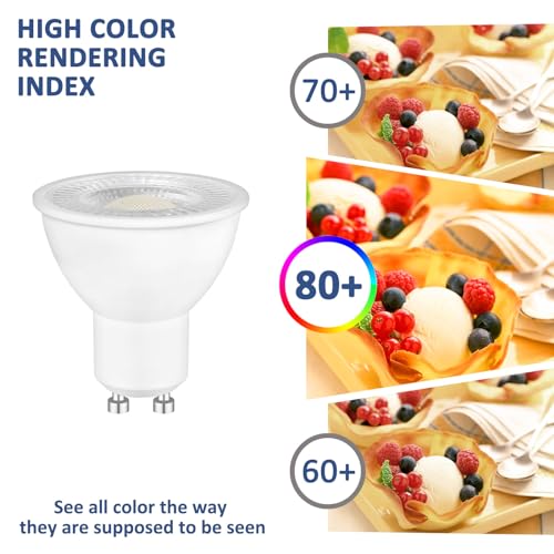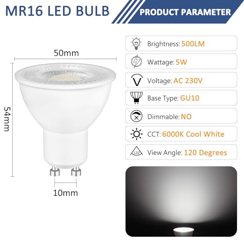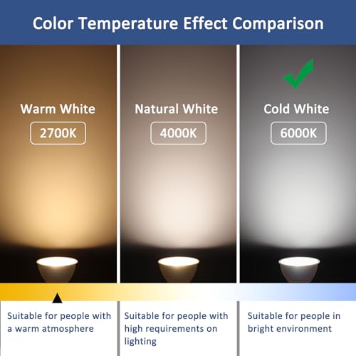 【Illuminazione focalizzata】 Questa lampadina per fari LED GU10 da 5 W ha un angolo del fascio di 120°, fornendo un'eccellente illuminazione focalizzata. La luce bianca fredda da 6000 K fornisce una luce più brillante, un'illuminazione istantanea, senza sfarfallio, senza abbagliamento, protegge meglio i tuoi occhi.
