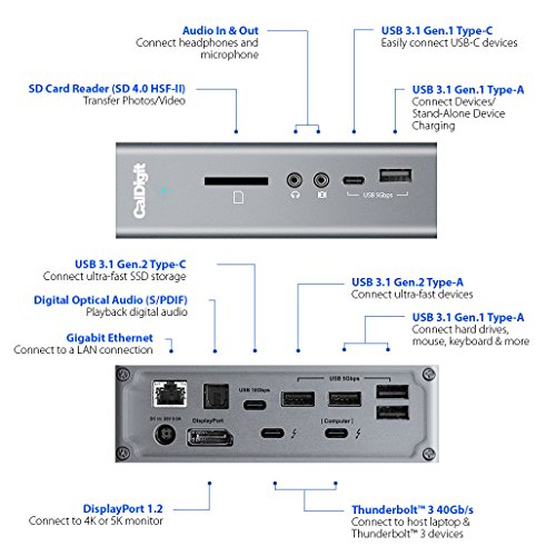 [MAC & WINDOWS COMPATIBLE]: ideale per MacBook Pro 2016+, 2017 iMac Pro, su Mac OS 10.12 o Windows 8/10 con una porta Thunderbolt 3. (Non compatibile con MacBook-Retina 2015+ con porta USB-C. Utilizzare il dock USB-C CalDigit con MacBook-Retina).