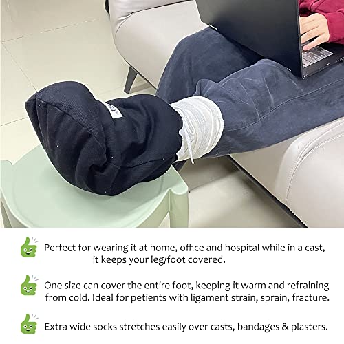 La copertura per calzini protegge il polpaccio/gamba e piede da sporco e freddo quando si vive con un piede rotto o distorsione. Nasconde l'antiestetico piede gonfio/nero e blu.