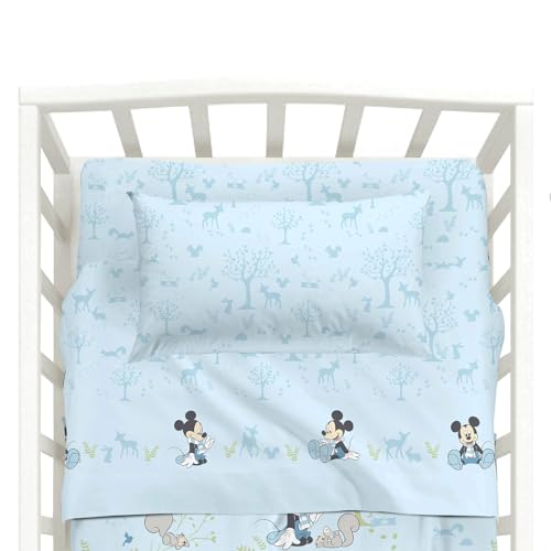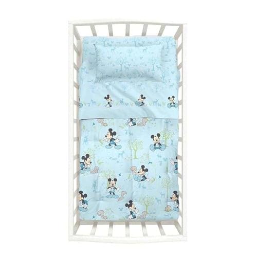 Caleffi 70980 Cotone Disney Mickey Boschetto Completo Lenzuola per Baby, Azzurro (9638)