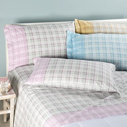 Caleffi Aosta Flanella Completo Lenzuola, Flanella, Azzurro, Matrimoniale, 1000895, Caleffi