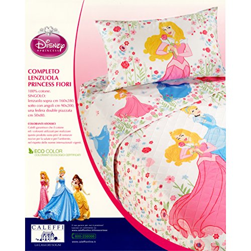Caleffi Completo Letto Principesse Disney Lenzuola Double Face Puro Cotone 100% Set sopra sotto Federe