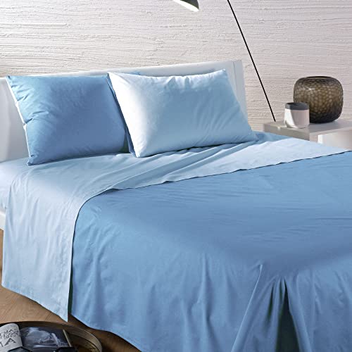 Caleffi - Lenzuolo-copriletto Bikolor Tinta Unita Matrimoniale Avio