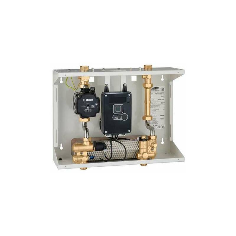 Satellite d'utenza pensile elettronico con funzione di: Produzione ACS istantanea (max 27 l/min) Funzione attivabile • Preriscaldo scambiatore ACS Componenti principali - valvola con regolazione modulante (Δp max ammesso 0,9 bar) - pompa ad alta efficienza lato primario - copertura in lamiera verniciata RAL9010 - scambiatore saldobrasato 40, 65 o 75 kW nominali Dimensioni (L x H x P): 476 x 350 x 188 mm.